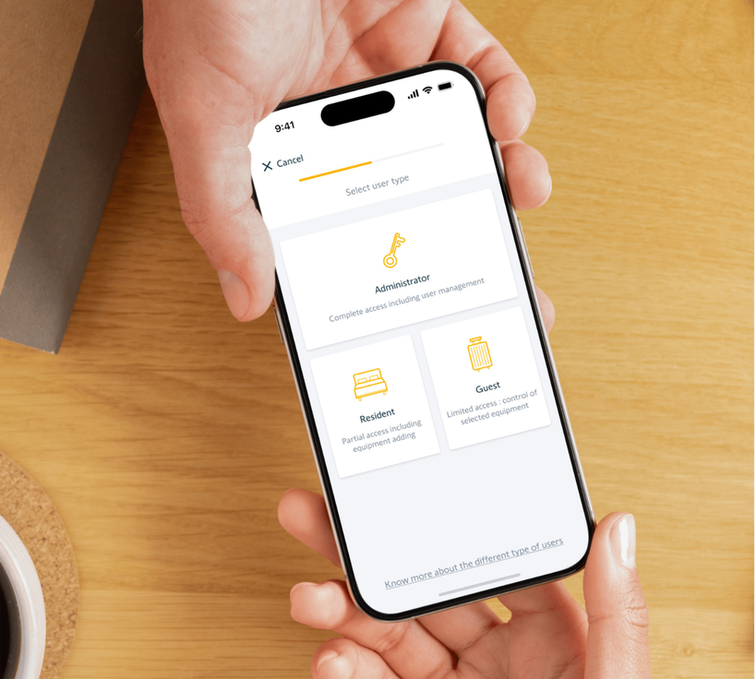 Now you can assign personalised access to family members, friends, occasional guests, or household employees. With three distinct access levels – Administrator, Resident, and Guest – you have full control over who can do what in your home.